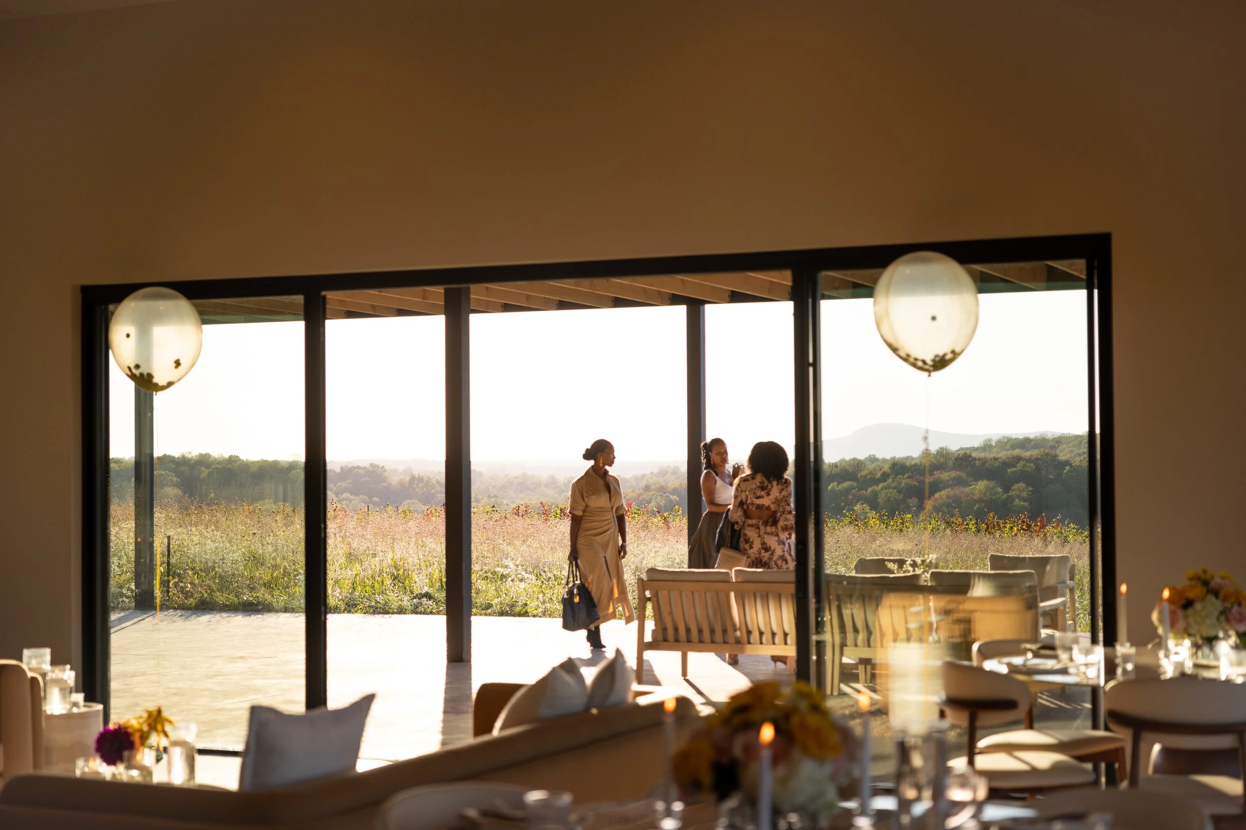 As evening falls, a softer glow settles over the hilltop and the Burnt Hill Lounge comes alive. This new space captures the farm’s spirit at its most relaxed—a place to gather, sip, and savor in good company. Champagne pours, sister-farm wines, and warm focaccia set the tone for shared plates and easy conversation. More casual than the Tasting Room but every bit as intentional, the Lounge invites guests to slow down and experience Burnt Hill in a new light.